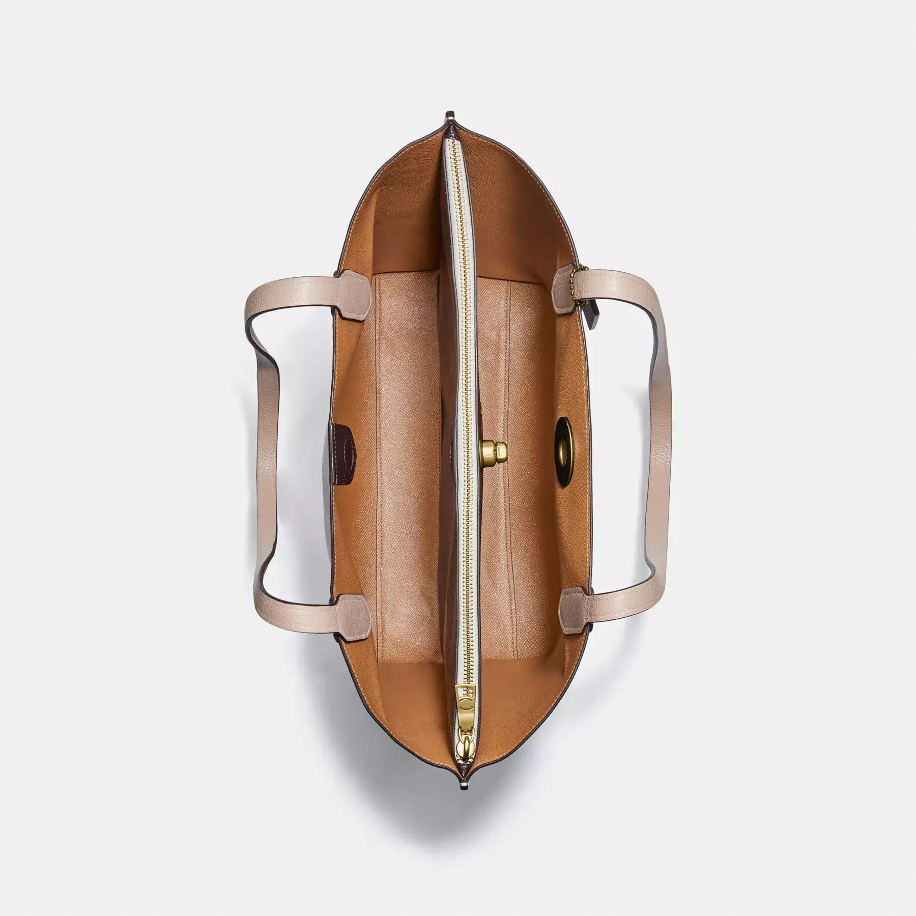 Not too big, not too small, Willow is the perfect carry-it-all tote with space for all of your day-to-day essentials. Crafted of colorblock polished pebble leather, it features two open pockets, a secure center zip compartment and slender shoulder straps designed with a longer drop to fit comfortably over coats. Finished with our Signature turnlock closure, it fits up to a 13″ laptop.